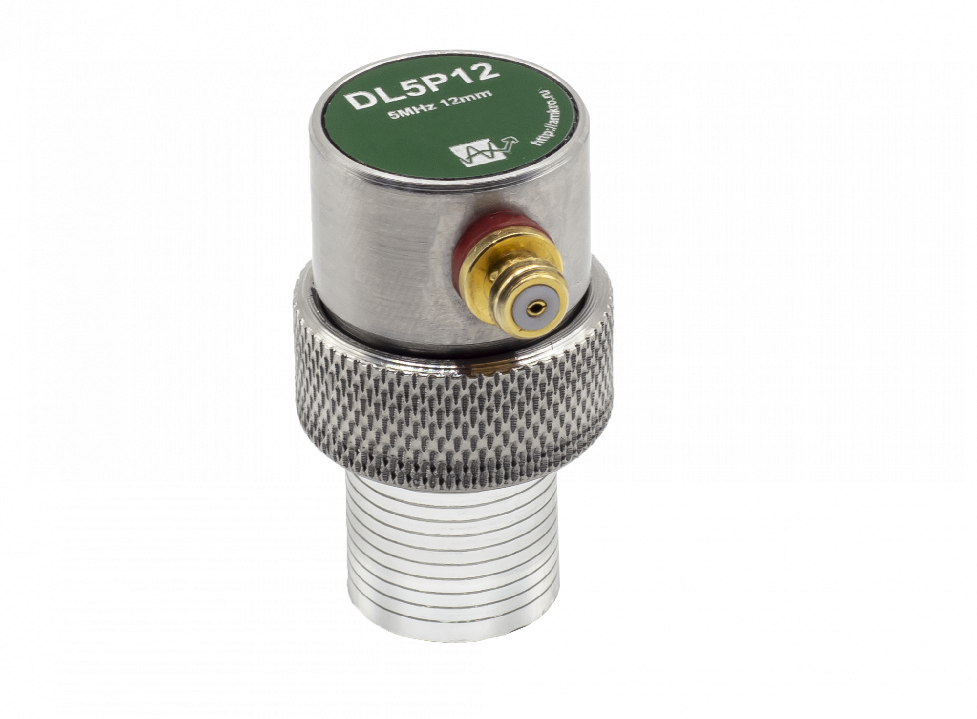 Преобразователь ультразвуковой DL5P12 (5 МГц) со сменной линией задержки. Предназначен для контроля толщины различных изделий  под лакокрасочными покрытиями, а также контроля точечной сварки, тонкостенных изделий и изделий сложной конфигурации.