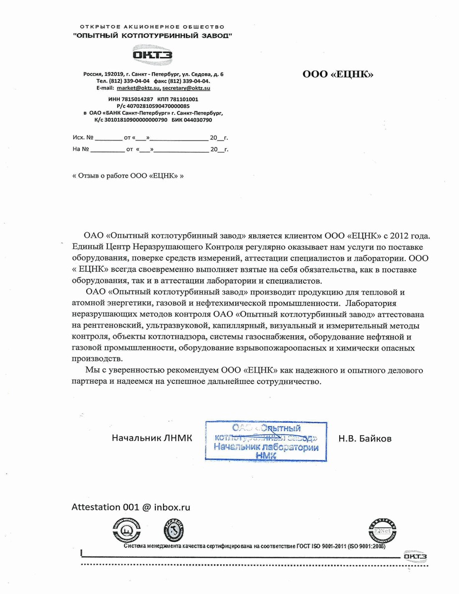 Начальник лаборатории и дефектоскопист, аттестованные не ниже 2 уровня)